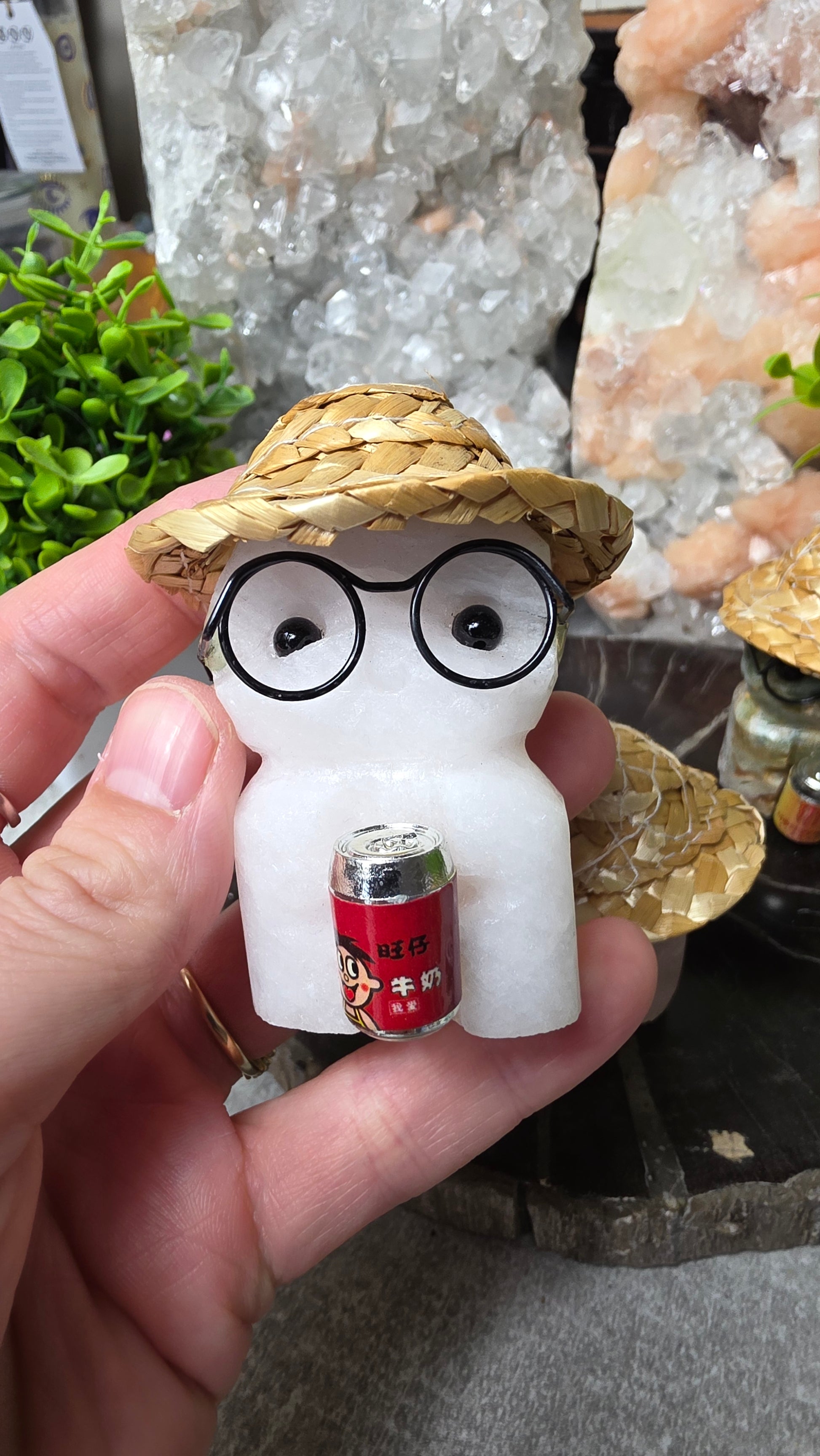Here we have some quirky crystal dudes. They come complete with their cool hats and their also holding a drink.
