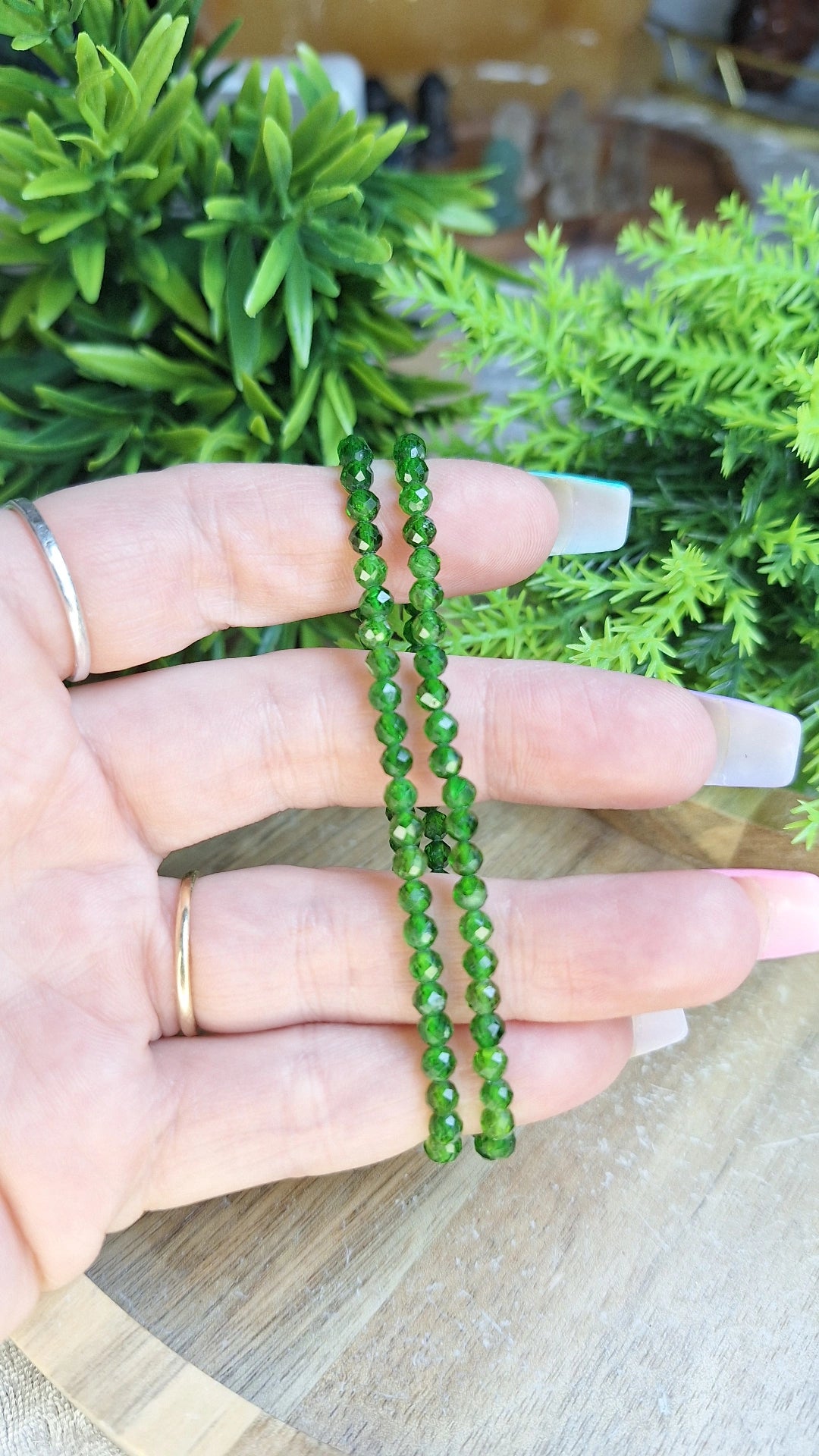 Energize your heart chakra with our Diopside faceted bracelet. This beautiful bracelet features Diopside, known for its ability to enhance emotional healing and balance. Let our bracelet be a source of comfort and support on your journey to inner peace.