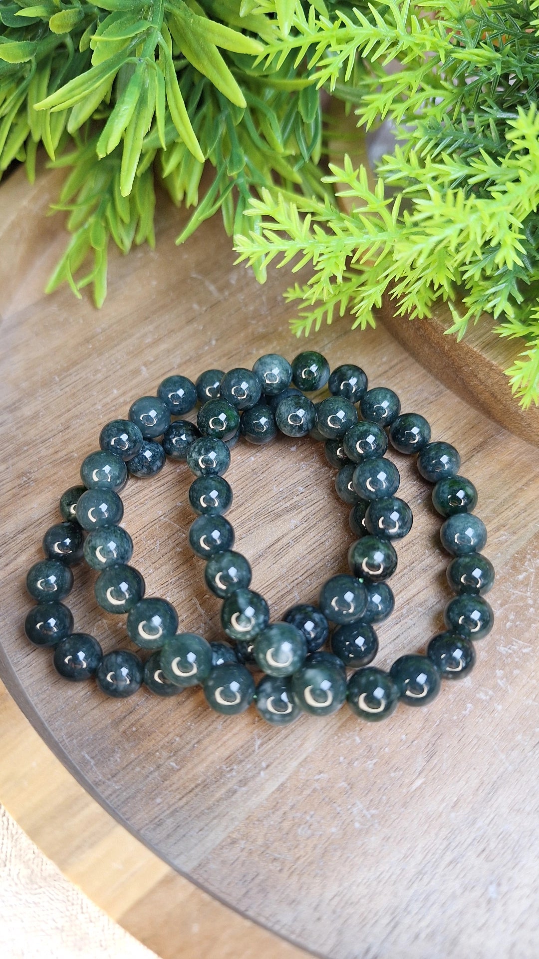 This authentic Guatamala jade bracelet is handcrafted from genuine Guatamala jade, known for its heart chakra balancing properties. Enhance your spiritual practice and inner peace with this beautiful, natural jade stone.