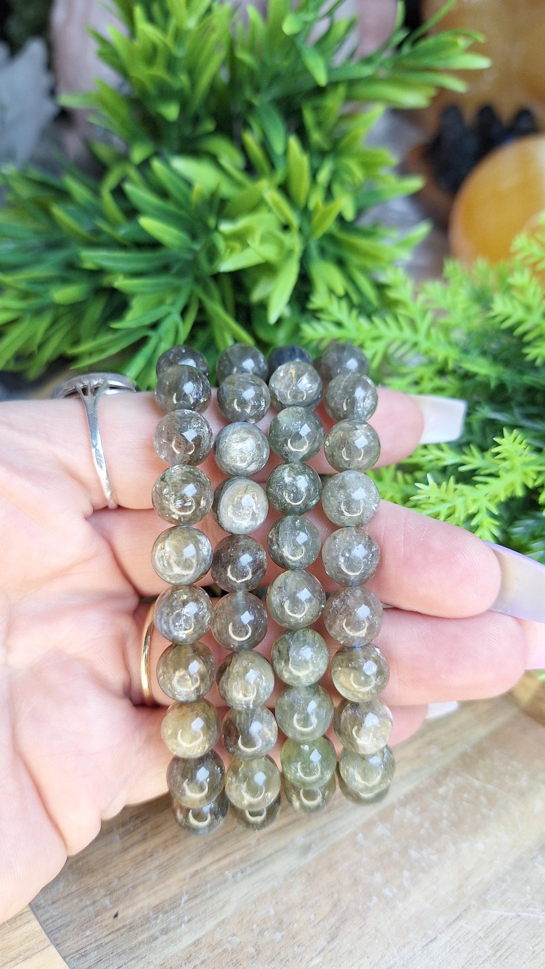 This Kyanite with mica bracelet is designed to balance and align all the heart chakra. The unique combination of these natural stones promotes spiritual growth and enhances overall well-being. As an industry expert, I confidently recommend this bracelet for its powerful healing properties.