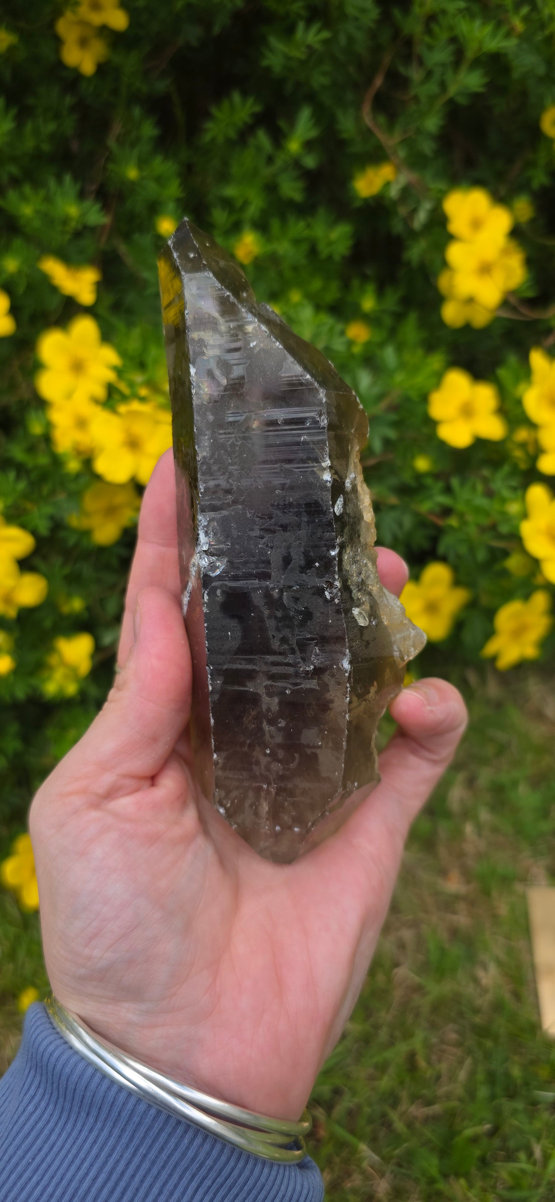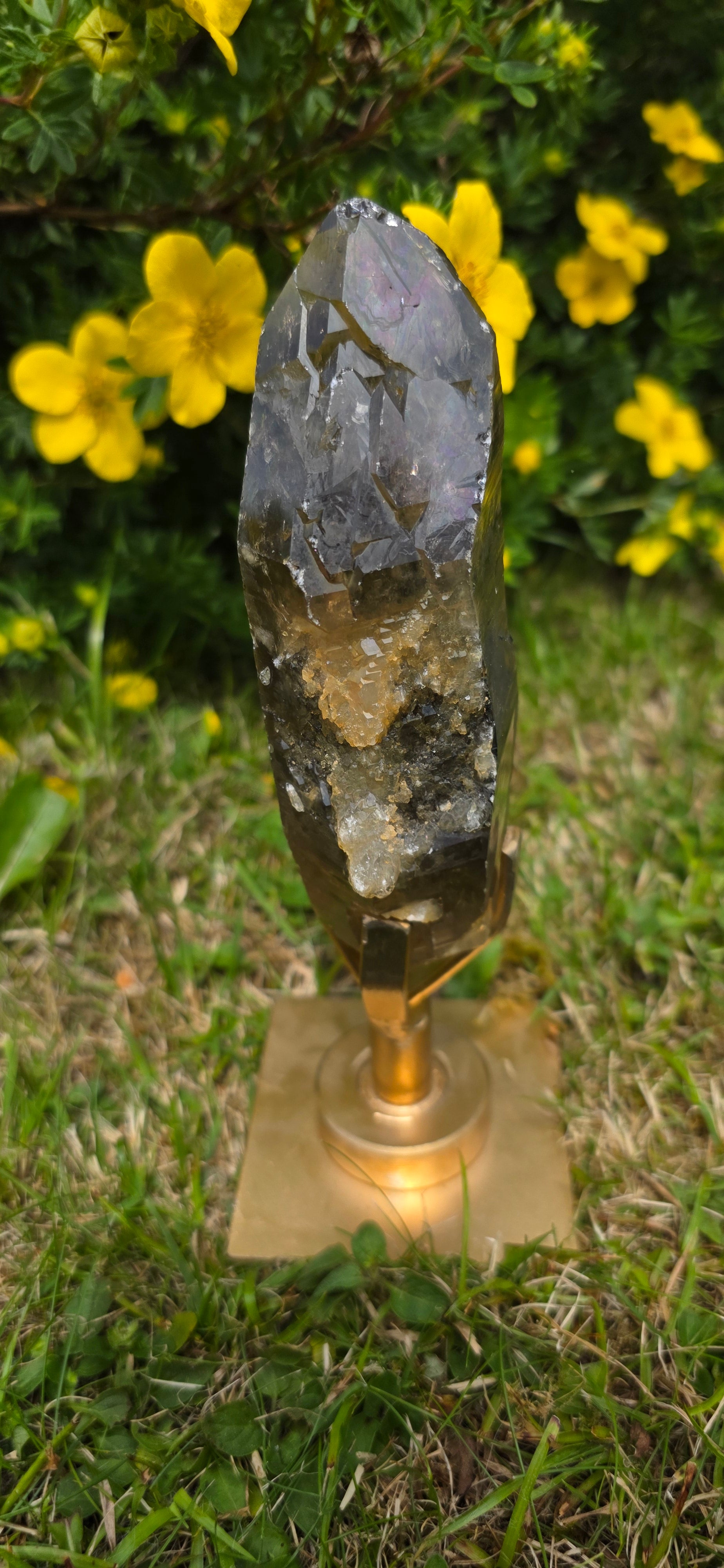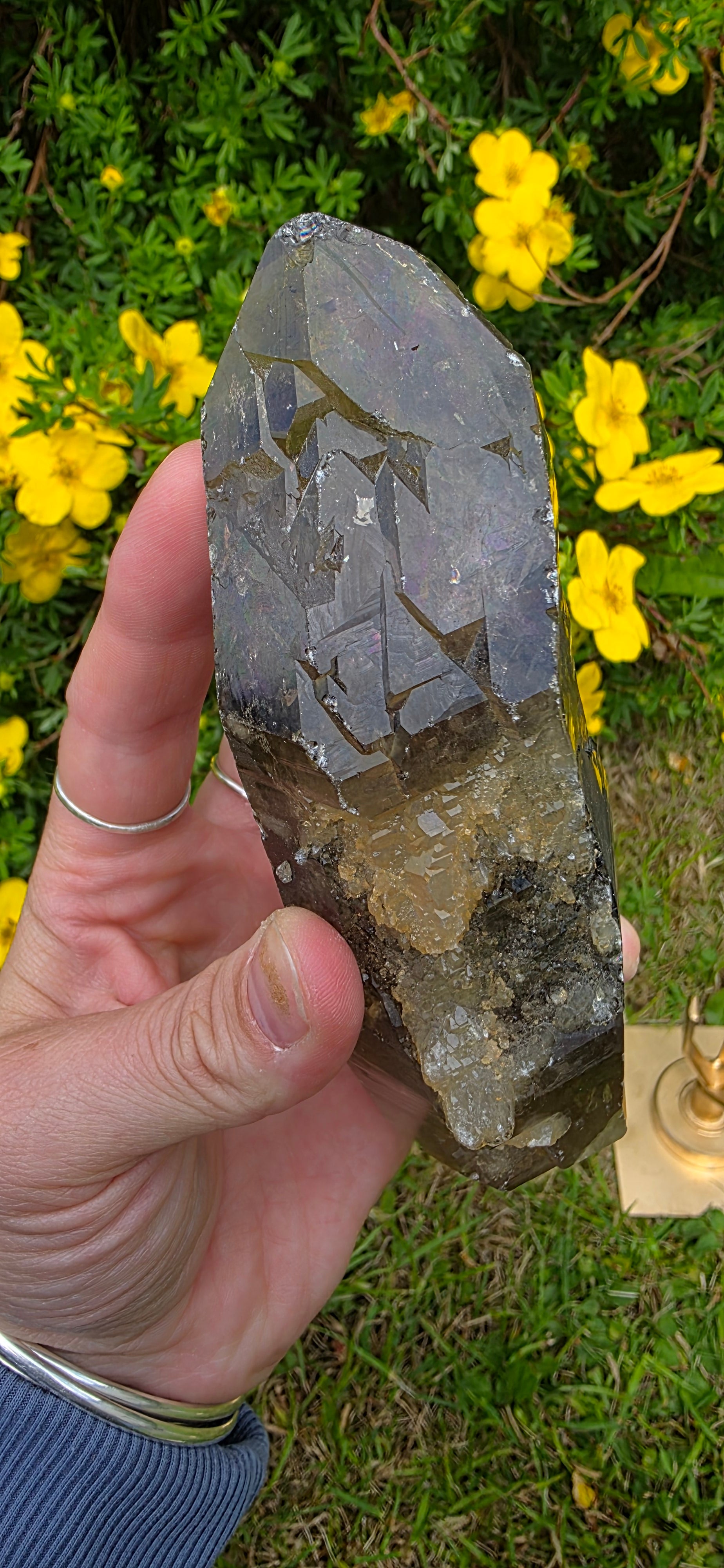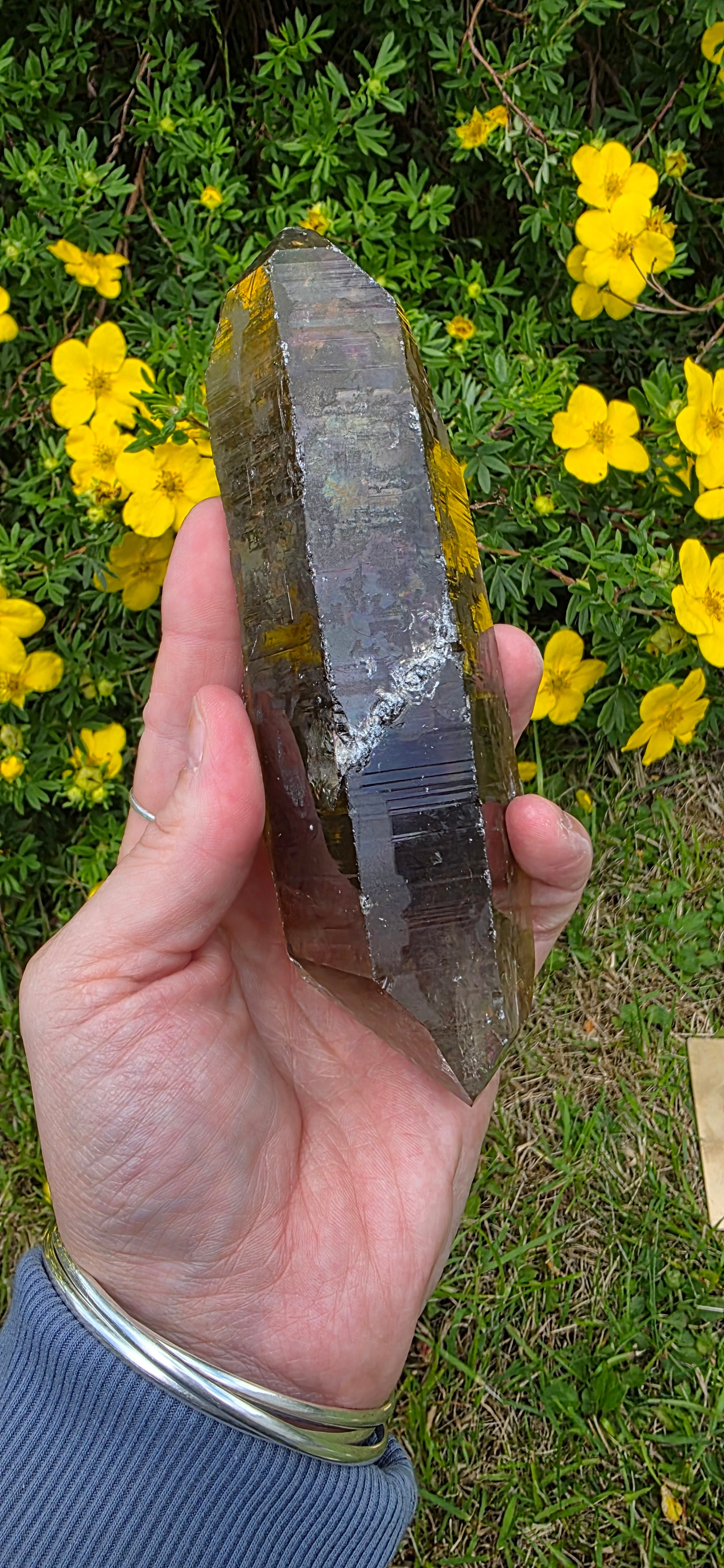 Here we have a gorgeous lightening struck smokey quartz dt. She has gorgeous rainbows all over her like an iridescent natural coat its beautiful.