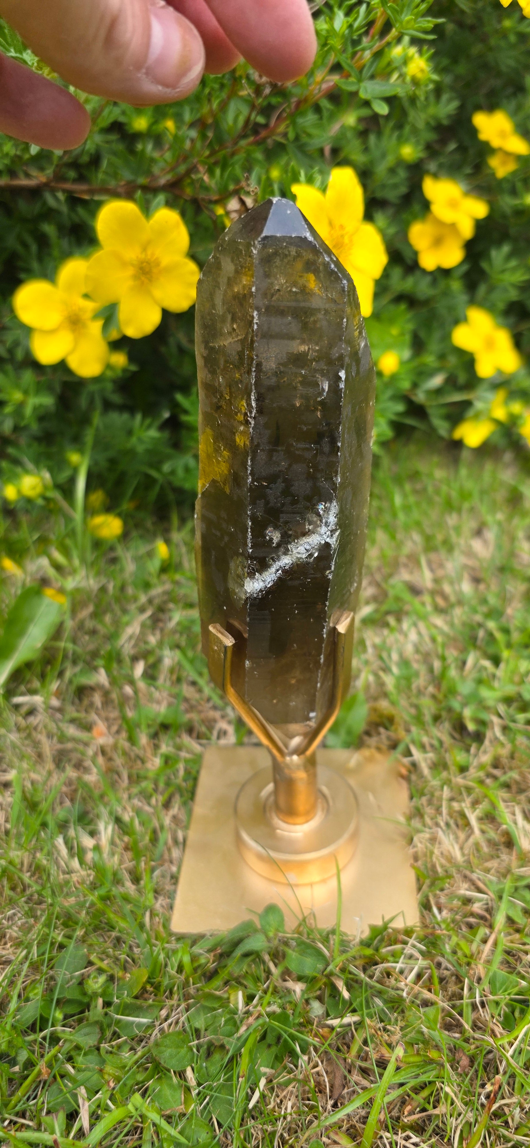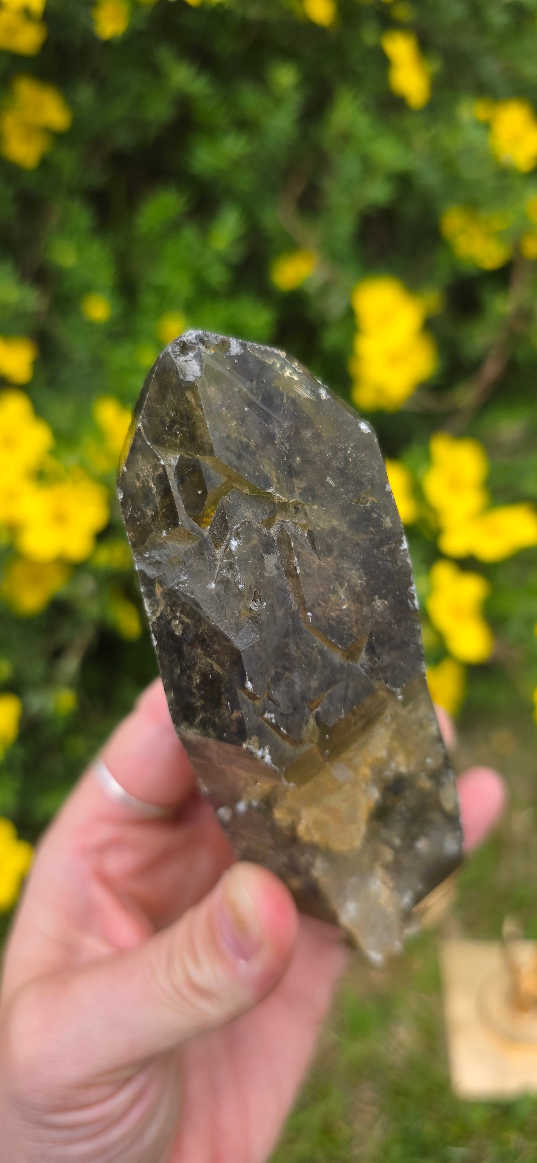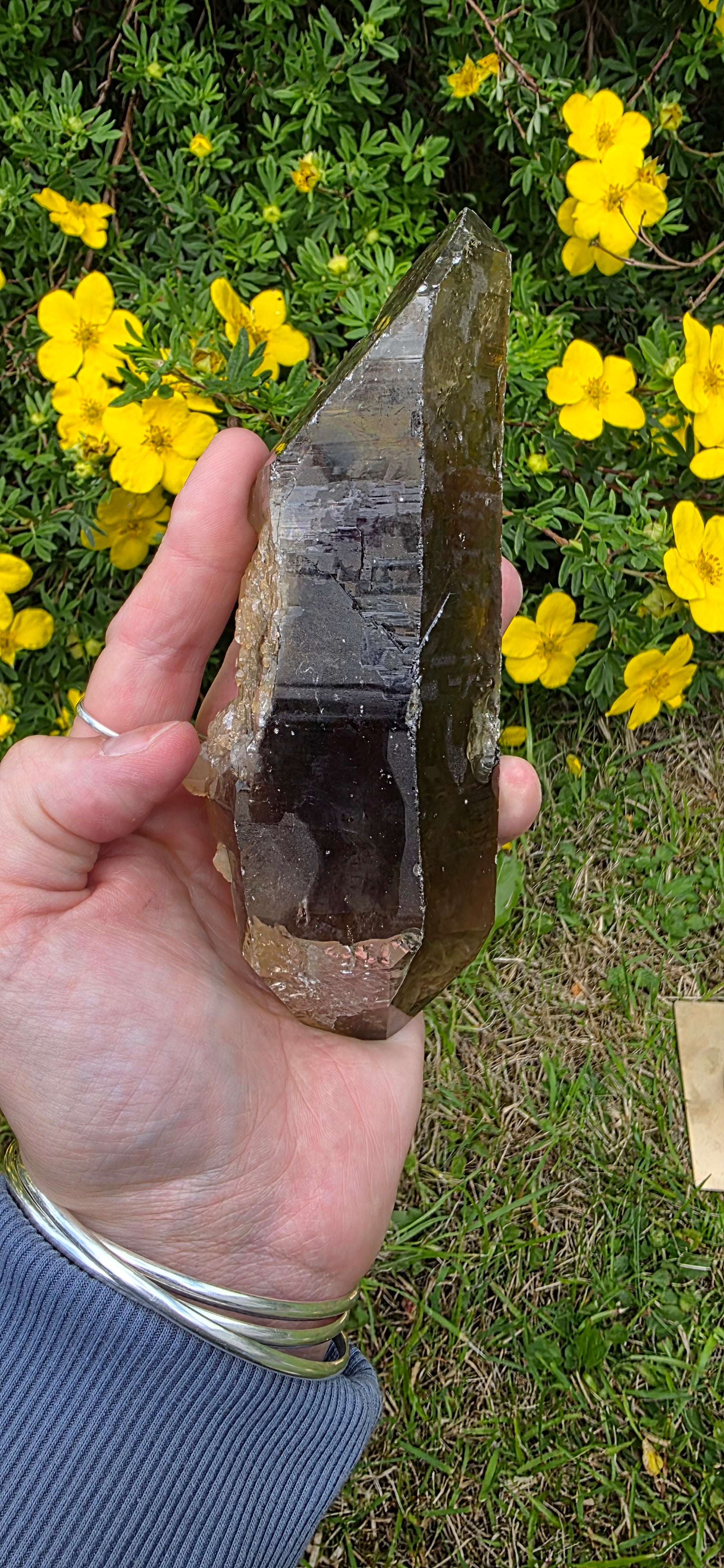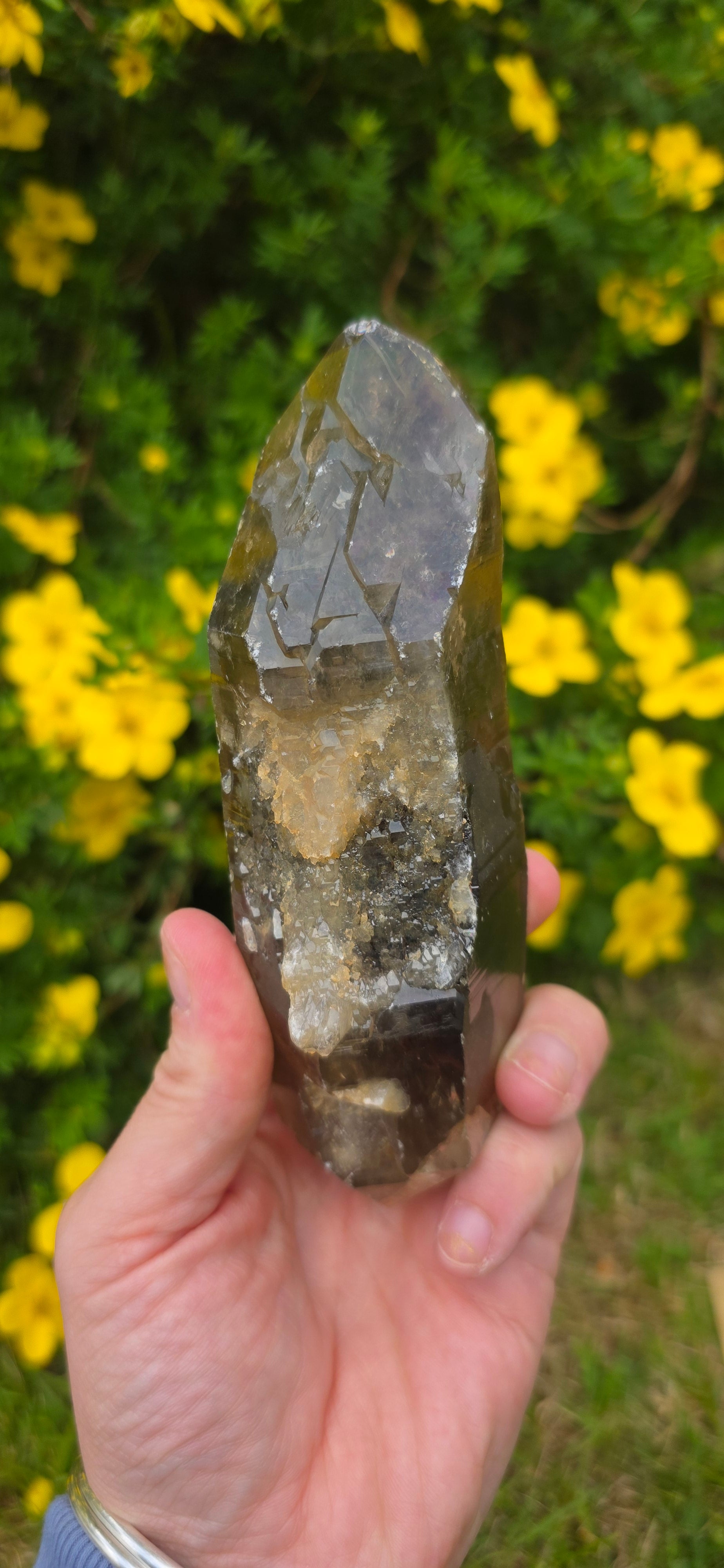 Here we have a gorgeous lightening struck smokey quartz dt. She has gorgeous rainbows all over her like an iridescent natural coat its beautiful.