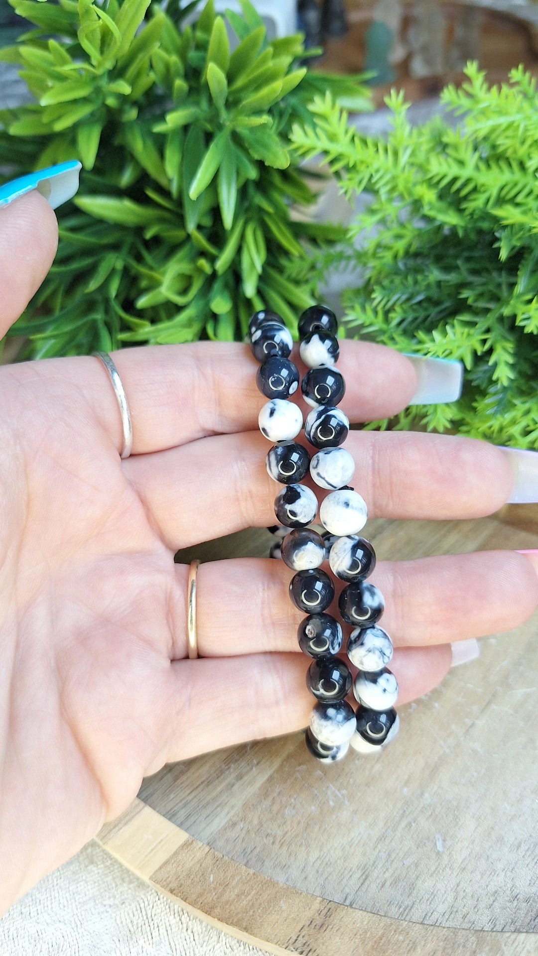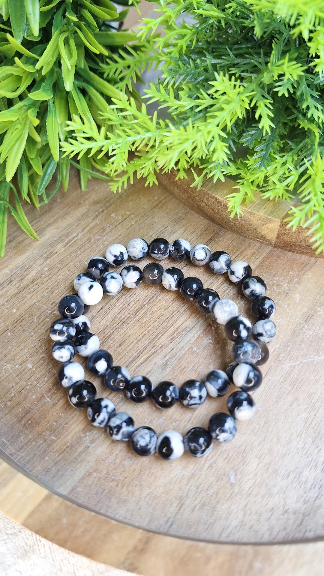 "The Orca agate bracelet is more than just a stylish accessory - it harnesses the natural healing properties of agate to align and balance your throat chakra. So go ahead and speak your truth, with a little help from this playful and powerful bracelet.(Whale noises not included.)"