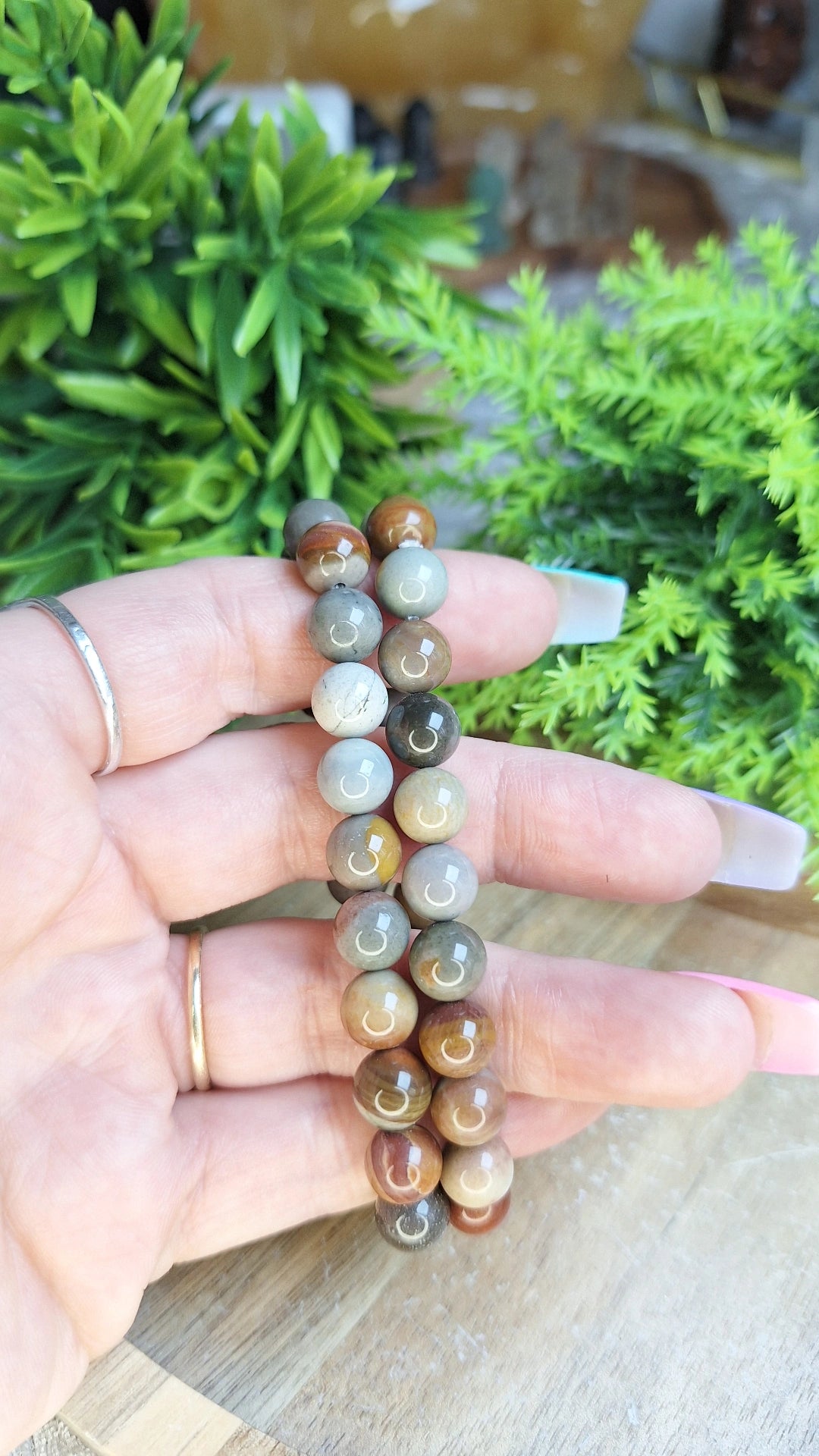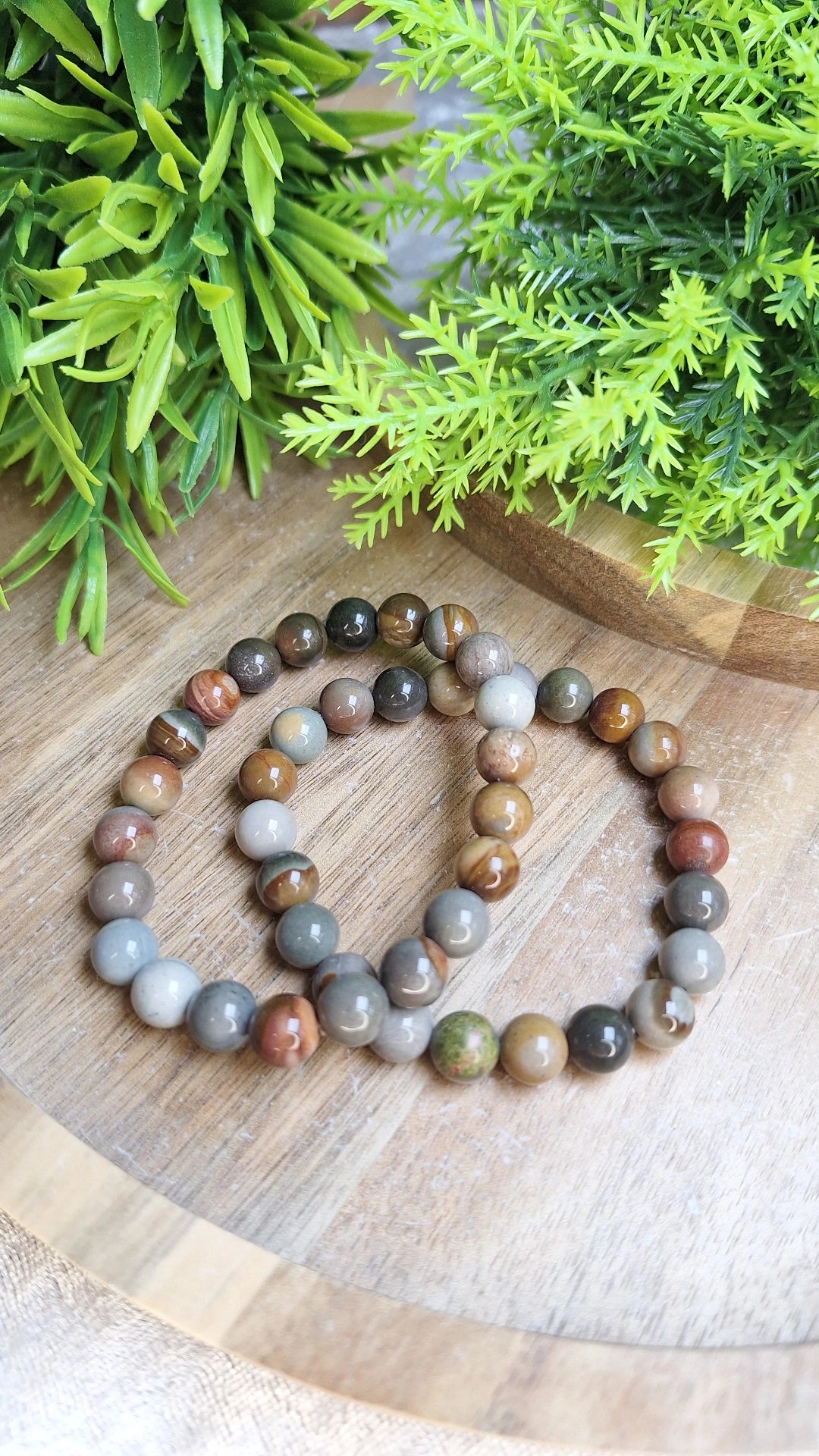 Experience inner peace and balance with our Polychrome Jasper Bracelet. This unique bracelet is made with Polychrome Jasper, which aligns and balances all chakras, with a special focus on the root chakra. Embrace a sense of calm and stability wherever you go.