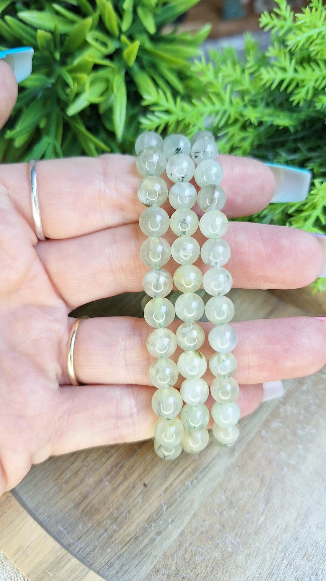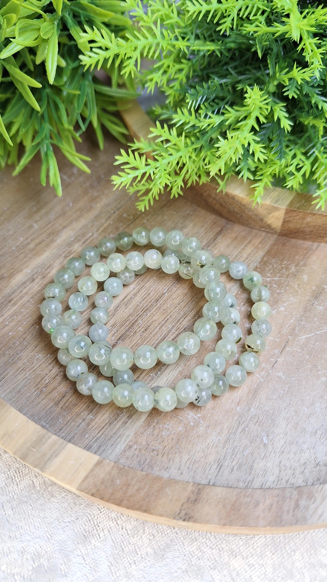 This Prehnite bracelet is expertly crafted to help balance and align your heart and solar plexus chakras. Made from high-quality Prehnite gemstones, this bracelet promotes emotional healing and empowers you to confidently move forward in life. Enhance your spiritual and physical well-being with this beautiful and meaningful accessory.