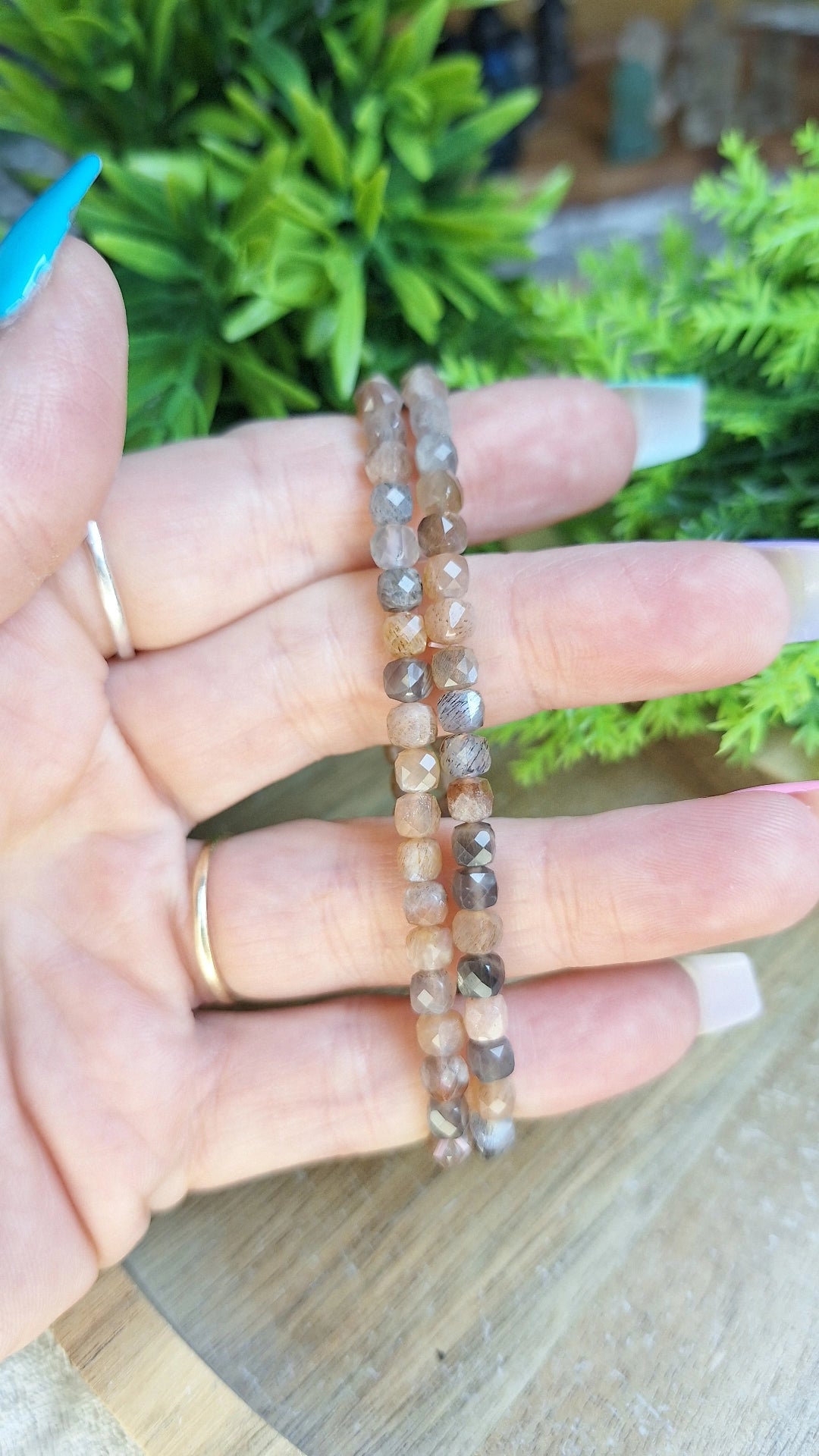 This sunstone and moonstone faceted bracelet is an exquisite mix of warm and cool tones, perfect for balancing your sacral and crown chakras. The faceted design adds a touch of elegance, while the blend of these powerful gemstones offers benefits such as increased energy, emotional balance, and intuition.
